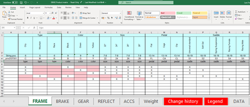 The EXCEL sheet must have a well-defined layout and the product experts can specify the configurator rules in a simple way with a business view by indicating valid combinations. We call that the Product Matrix.